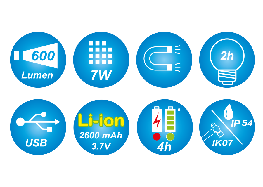Autonomía : 2 horas de luz sin interrupción, 15 horas de luz en intensidad baja