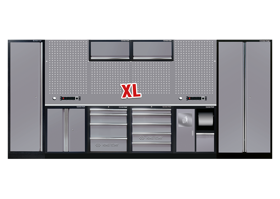 KING TONY – Mobiliario de taller 4 muebles y armarios color gris “inoxidable” XL